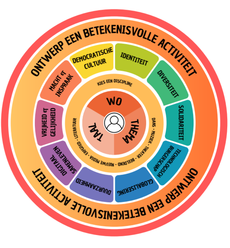De ontwerpcirkel van Hannelore Rubie (Vrienden van Bibi) is een handig hulpmiddel om zelf een creatieve les over burgerschap samen te stellen. Download hier het bestand.